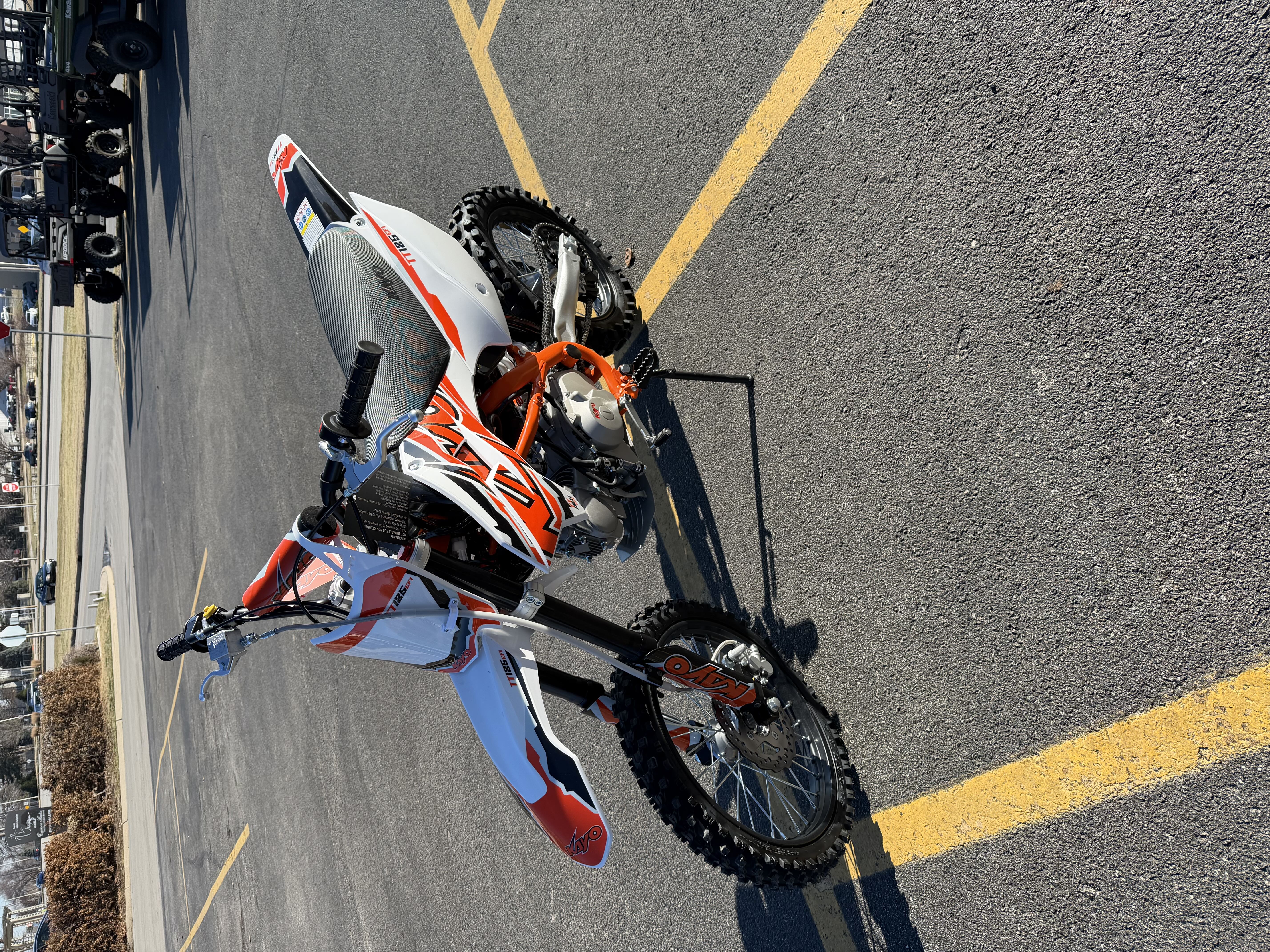 Fuel-injected and fully CARB compliant, the all-new TT125 EFI is ready to rip. This 4-speed manual packs punchy power in a lightweight frame, tipping the scales at just 161 pounds. With full-size 17″ front and 14″ rear wheels, a 33.6″ seat height, and beefy inverted forks paired with a responsive rear shock, it's built to take the hits and keep charging. Big brakes deliver confident stopping power, and dual electric and kick start options make getting going a breeze–no matter where you ride.