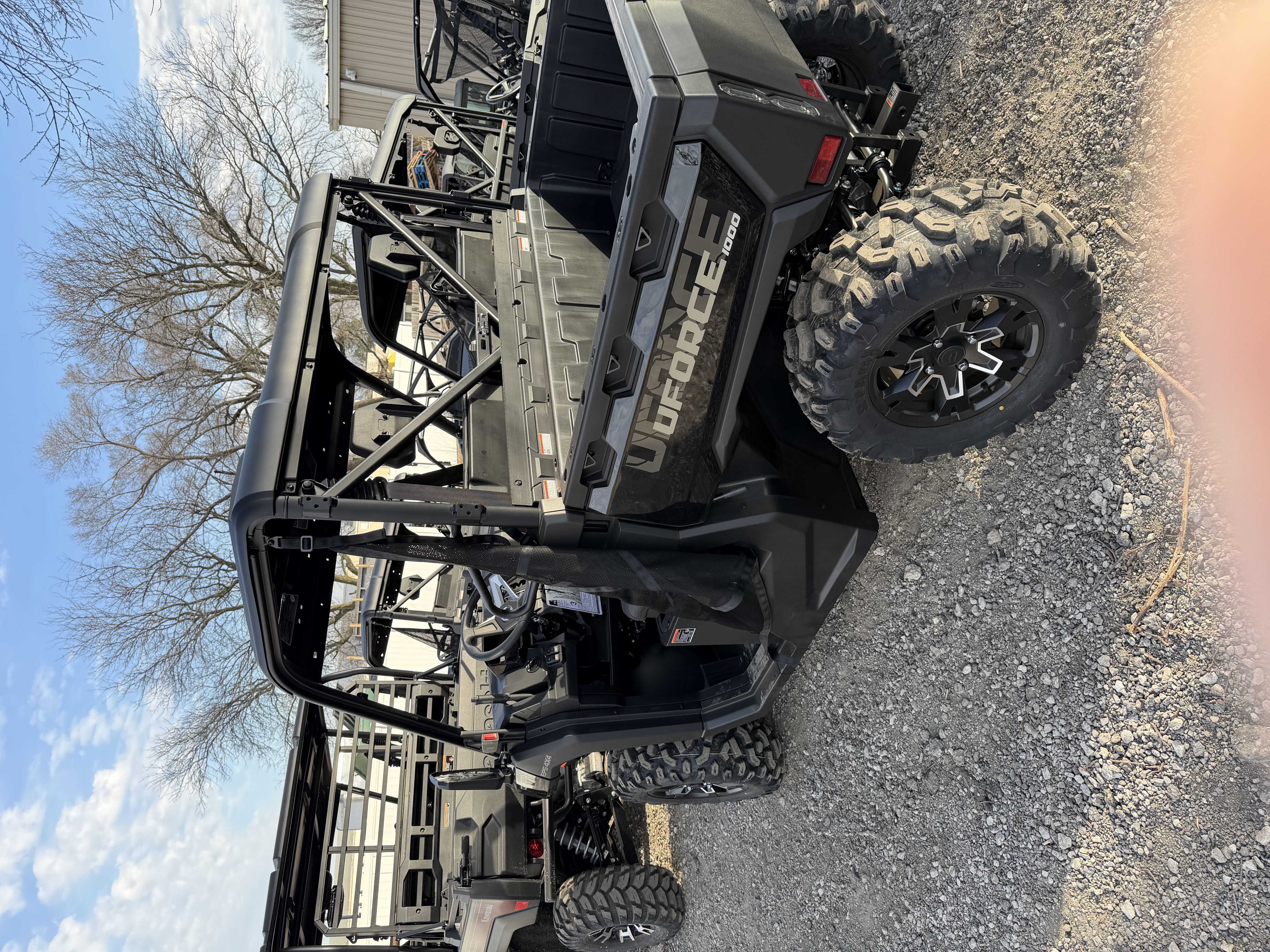 BUILT FOR CREWS OF THREE WHO WORK LIKE SIX, THE UFORCE 1000 PACKS A 963CC V-TWIN PUNCHING OUT 71 HP AND 54 LB-FT OF TORQUE. A GAS-ASSISTED 1,000-LB. DUMP BOX, 2,500-LB. TOW RATING, AND A FACTORY-INSTALLED 3,500-LB. SYNTHETIC ROPE WINCH MEAN YOU’RE NEVER SHORT ON PULL. KYB-TUNED SUSPENSION AND 12 INCHES OF GROUND CLEARANCE FLATTEN RUTS LIKE THEY WERE NEVER THERE, WHILE THE PULSE™ DIGITAL DISPLAY KEEPS TABS ON EVERY SYSTEM. LONG HOURS? THE SCULPTED BENCH SEAT, TILT STEERING, AND UNDER-SEAT TOOLBOX SAY, “BRING IT ON.” WORKDAY OR WEEKEND—THIS IS THE DO-ALL, FIT-ALL UTV FOR RIDERS WHO MEASURE SUCCESS IN CHORES CROSSED OFF AND TRAILS CROSSED OVER.