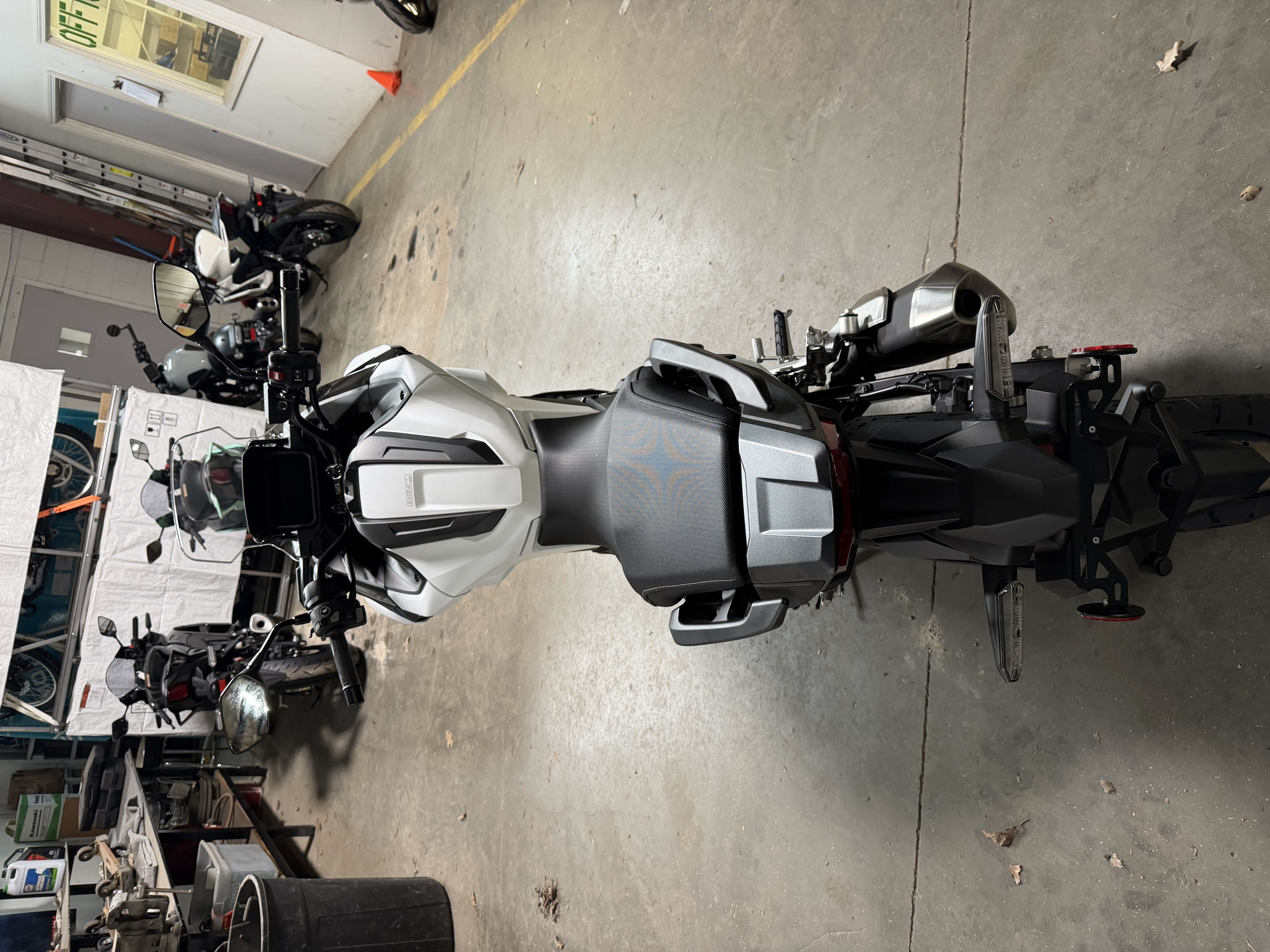 The under-seat fuel tank centralizes mass and enhances overall handling. Locating the tank and filler underneath the passenger seat allows for innovative centralized storage between the front of the seat and the handlebar.
